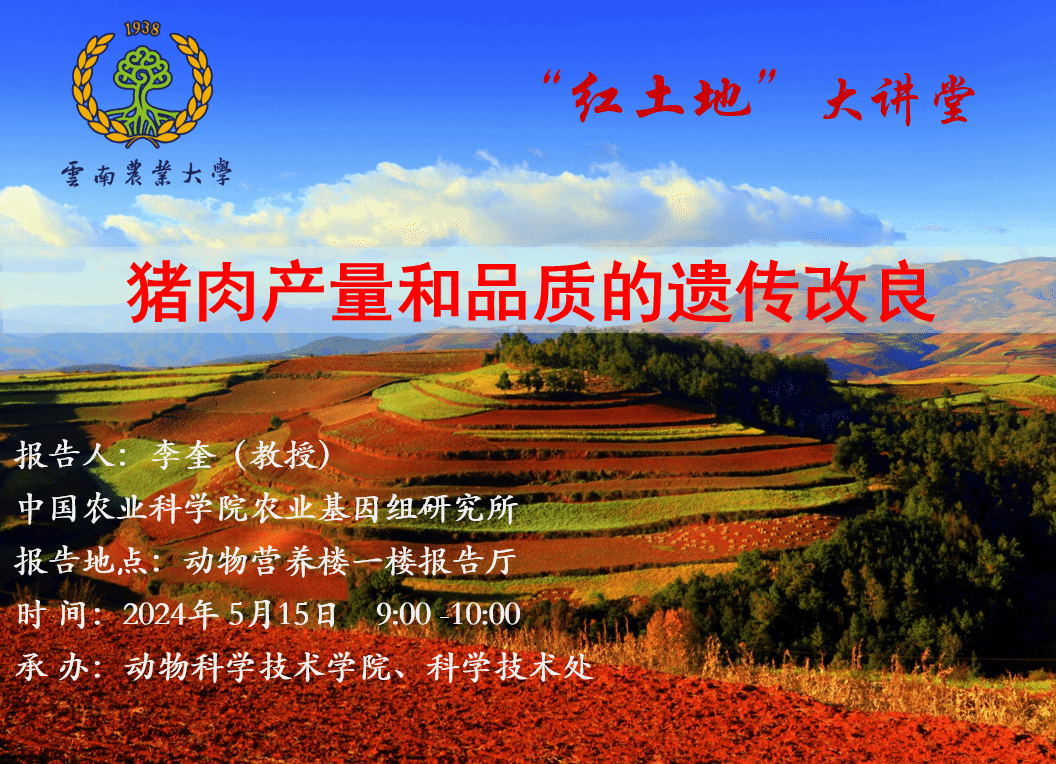 5月15日“红土地”大讲堂:猪肉产量和品质的遗传改良