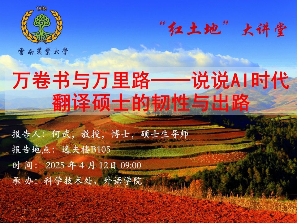 4月12日“红土地”大讲堂:万卷书与万里路——说说AI时代翻译硕士的韧性与出路