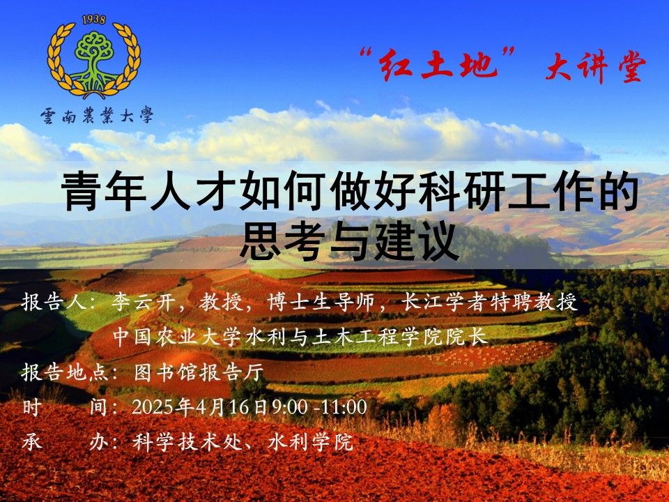 4月16日“红土地”大讲堂:青年人才如何做好科研工作的思考与建议