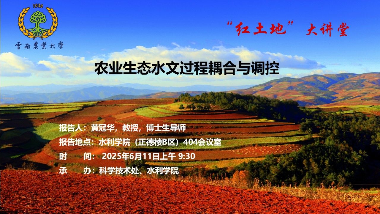 6月11日“红土地”大讲堂:农业生态水文过程耦合与调控