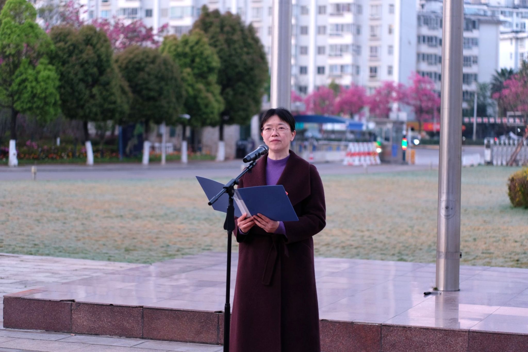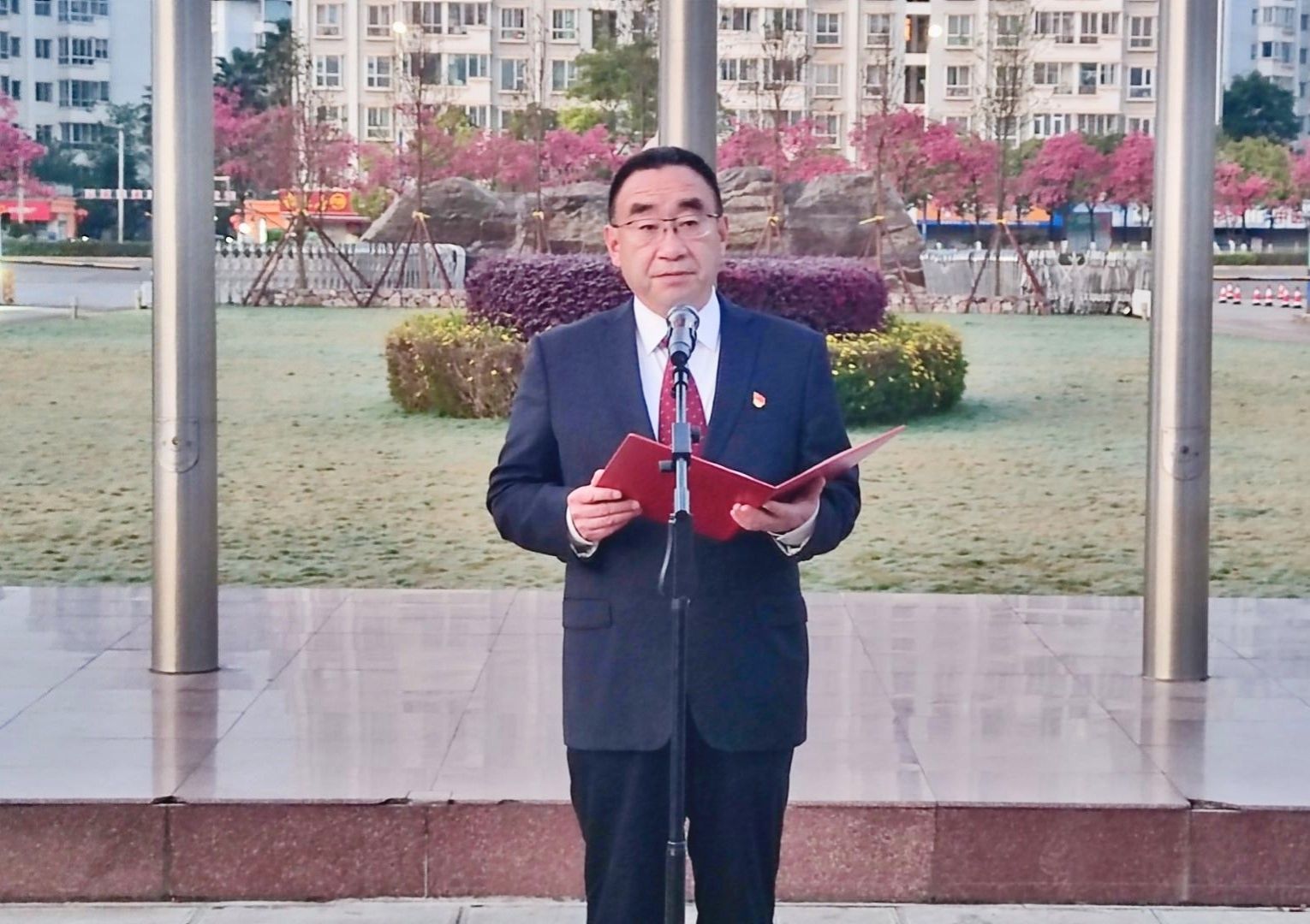 国旗下,王卫斌为千名师生带来了一堂生动而深刻的“国旗下的思政课”。他指出,国旗是国家的象征,爱国是青春的底色,当前我国正处在建设农业强国、培育农业新质生产力的关键时期,作为以工科为特色的机电学子,更应在国旗下思考“强国建设,青年何为”的时代命题。他希望,学院师生紧密对接云南农业现代化发展需求,发挥专业优势,将个人理想融入国家发展大局,将专业学习与家国命运紧密结合,在服务“三农”的实践中践行使命担当。他强调,真正的爱国不是抽象的口号,而是将论文写在祖国大地上、把成果应用在农业农村现代化建设中的实际行动,在建设农业强国、推进乡村全面振兴的伟大征程中书写华彩篇章,为学校高质量发展和全国农业现代化建设贡献机电人的智慧与力量!